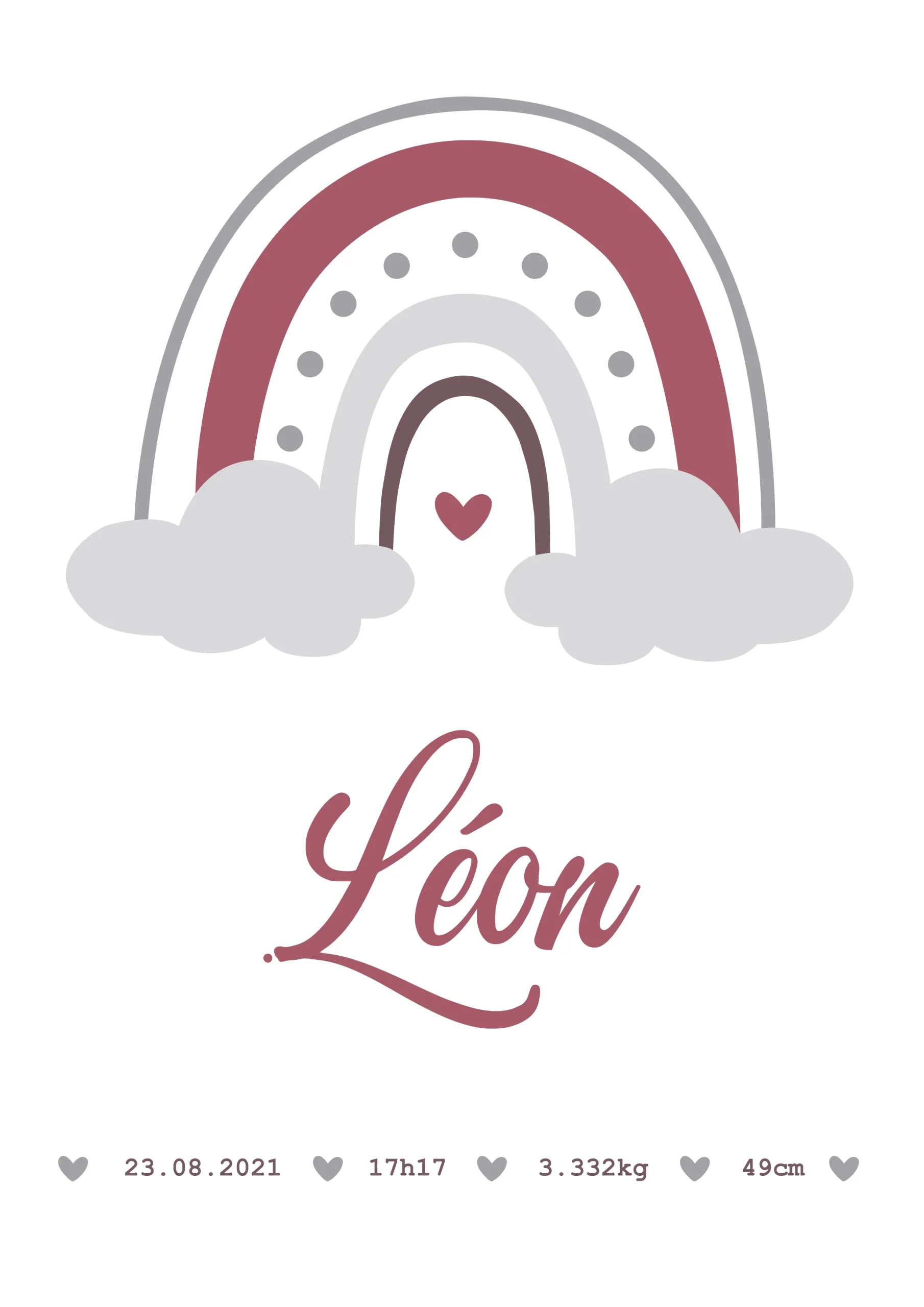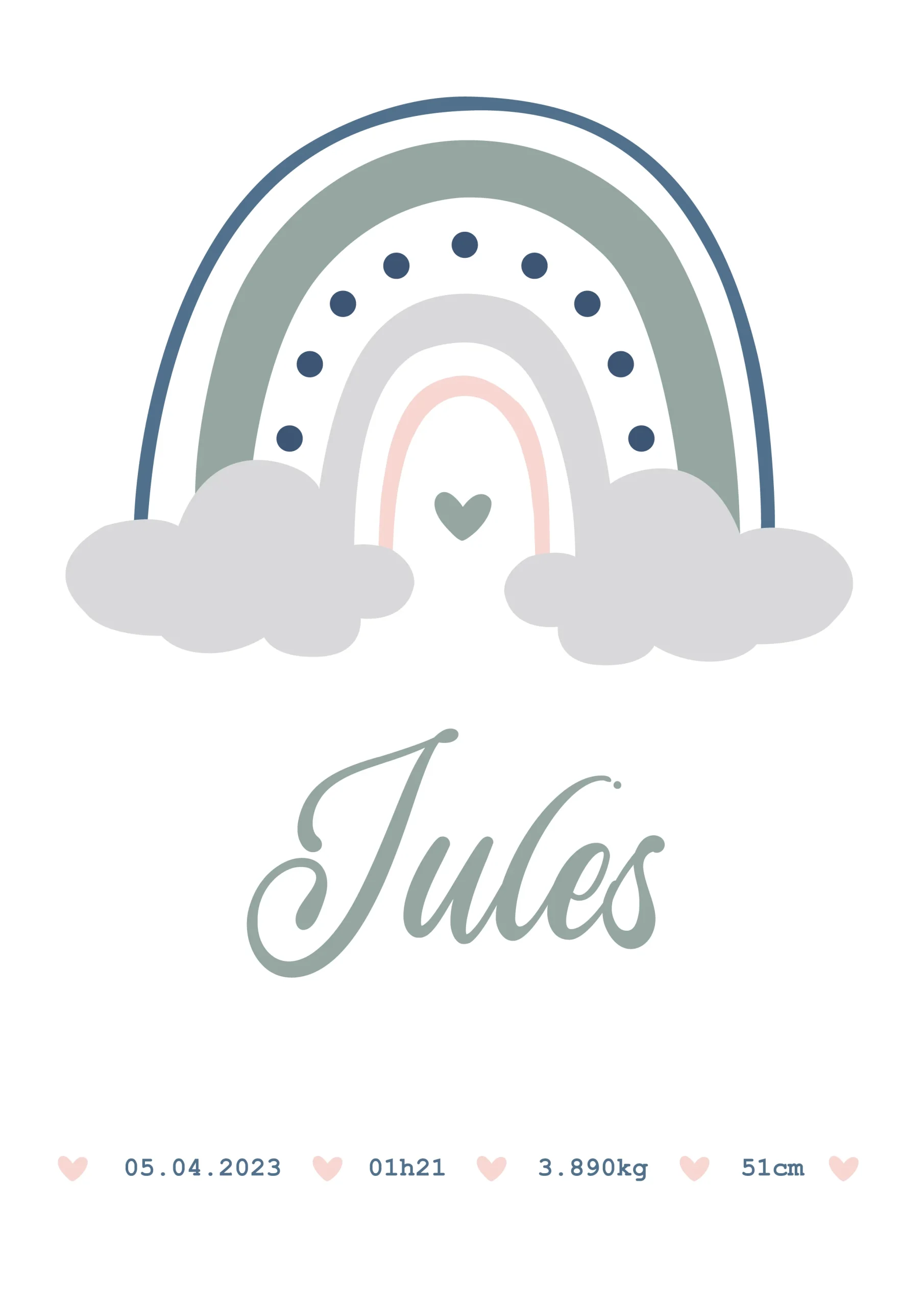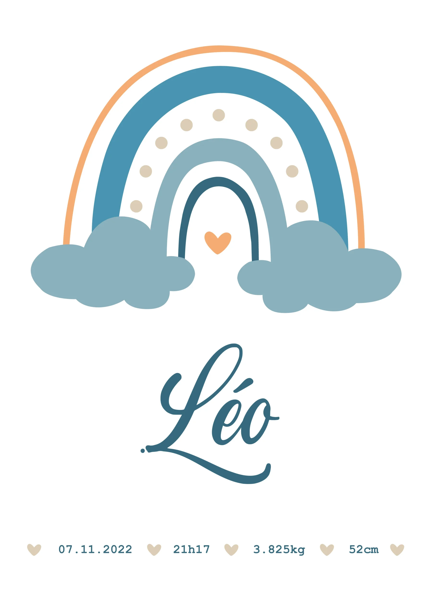 Affiche* personnalisée Arc en Ciel (couleur au choix) avec : -Son prénom -Sa date de naissance -Son Heure de naissance -Son Poids de naissance -Sa Taille de naissance . *Attention vous commandé une affiche au format numérique (PDF A4) Elle vous sera envoyé par mail en 48 à 72h ouvrés Merci de bien renseigner les […]