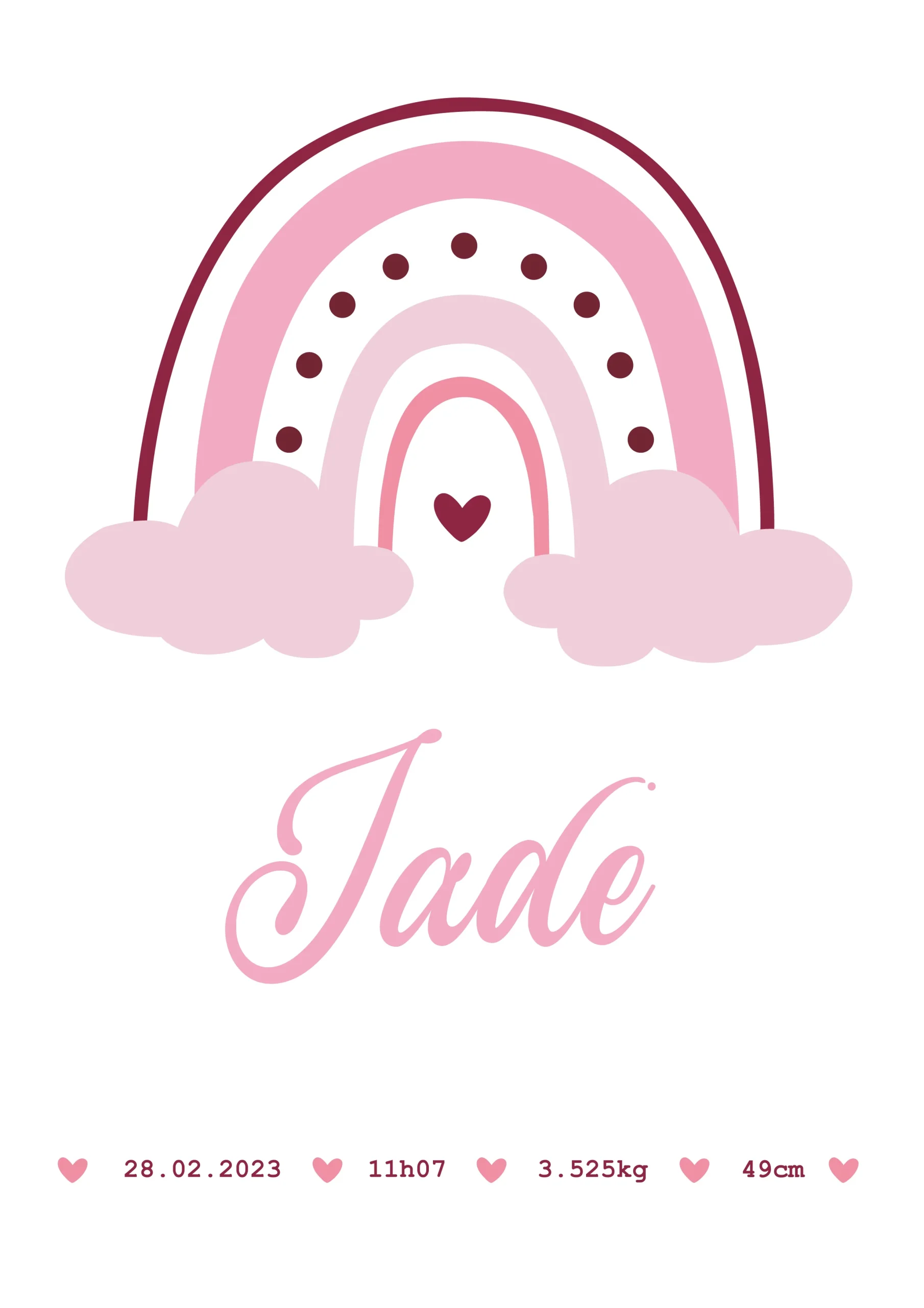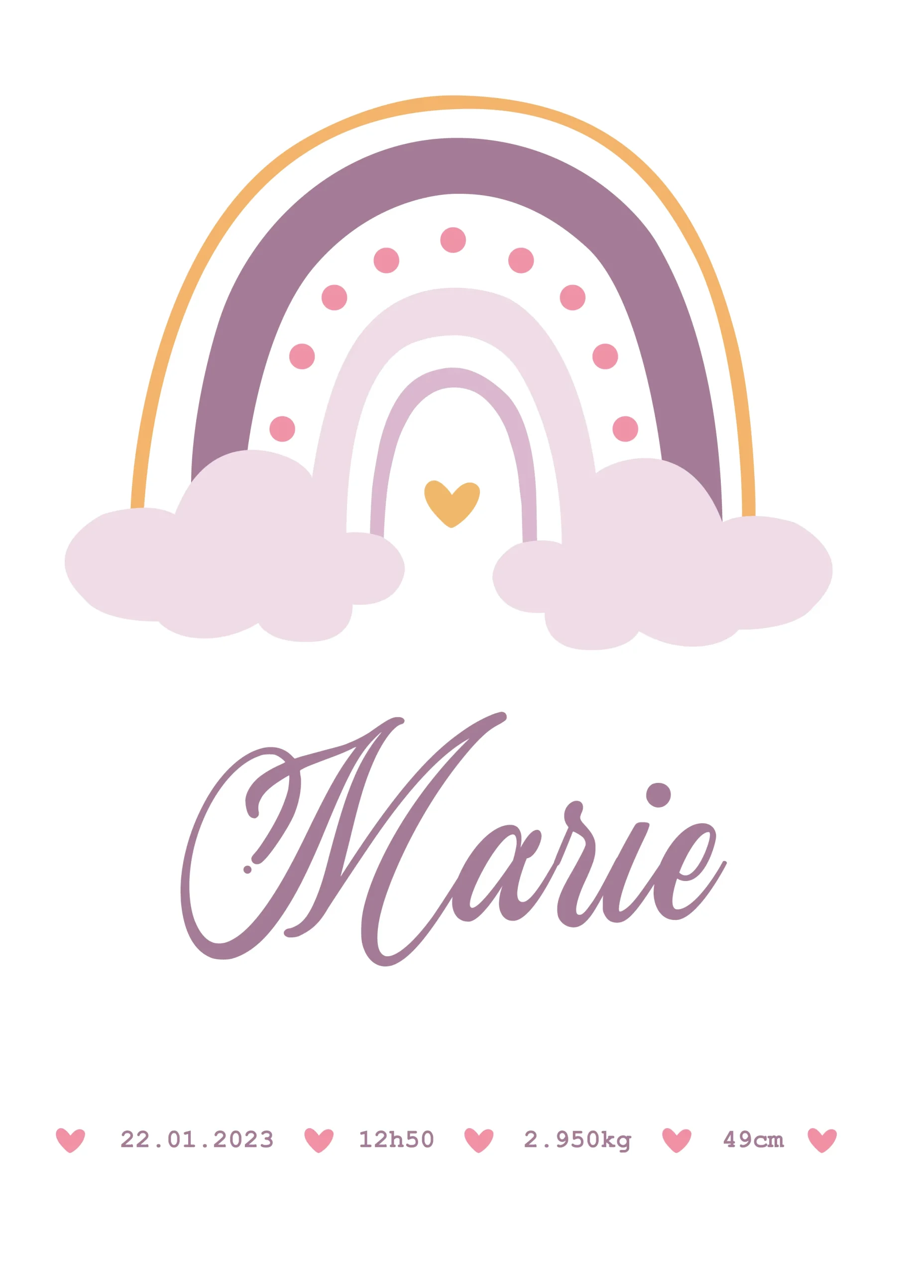 Affiche* personnalisée Arc en Ciel (couleur au choix) avec :