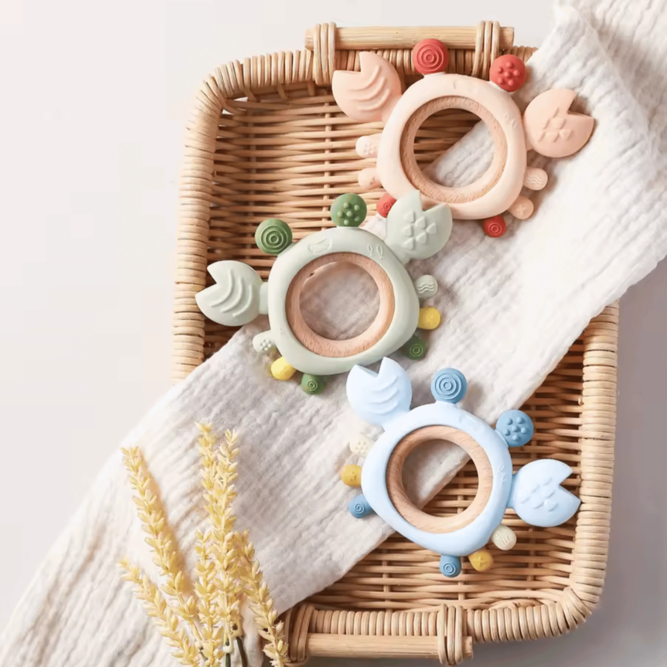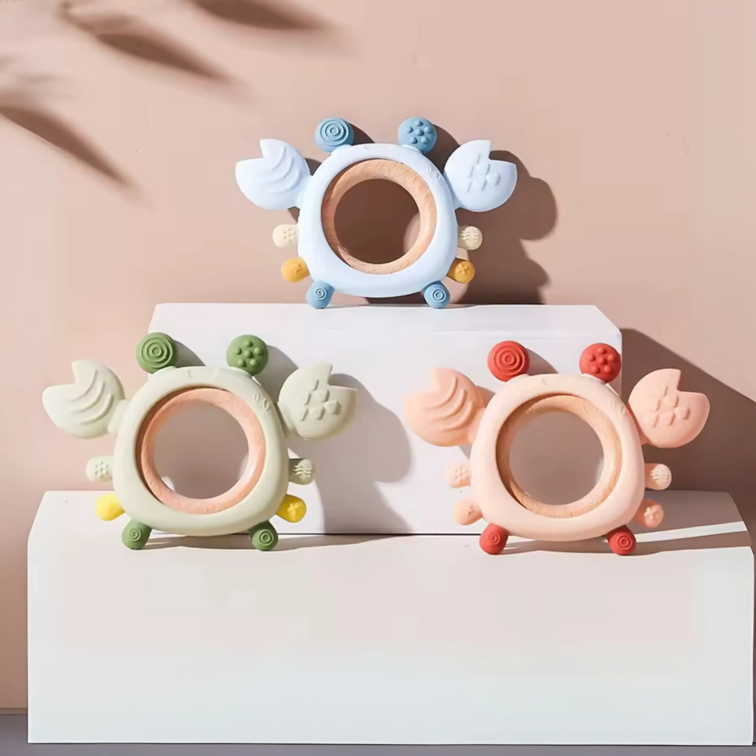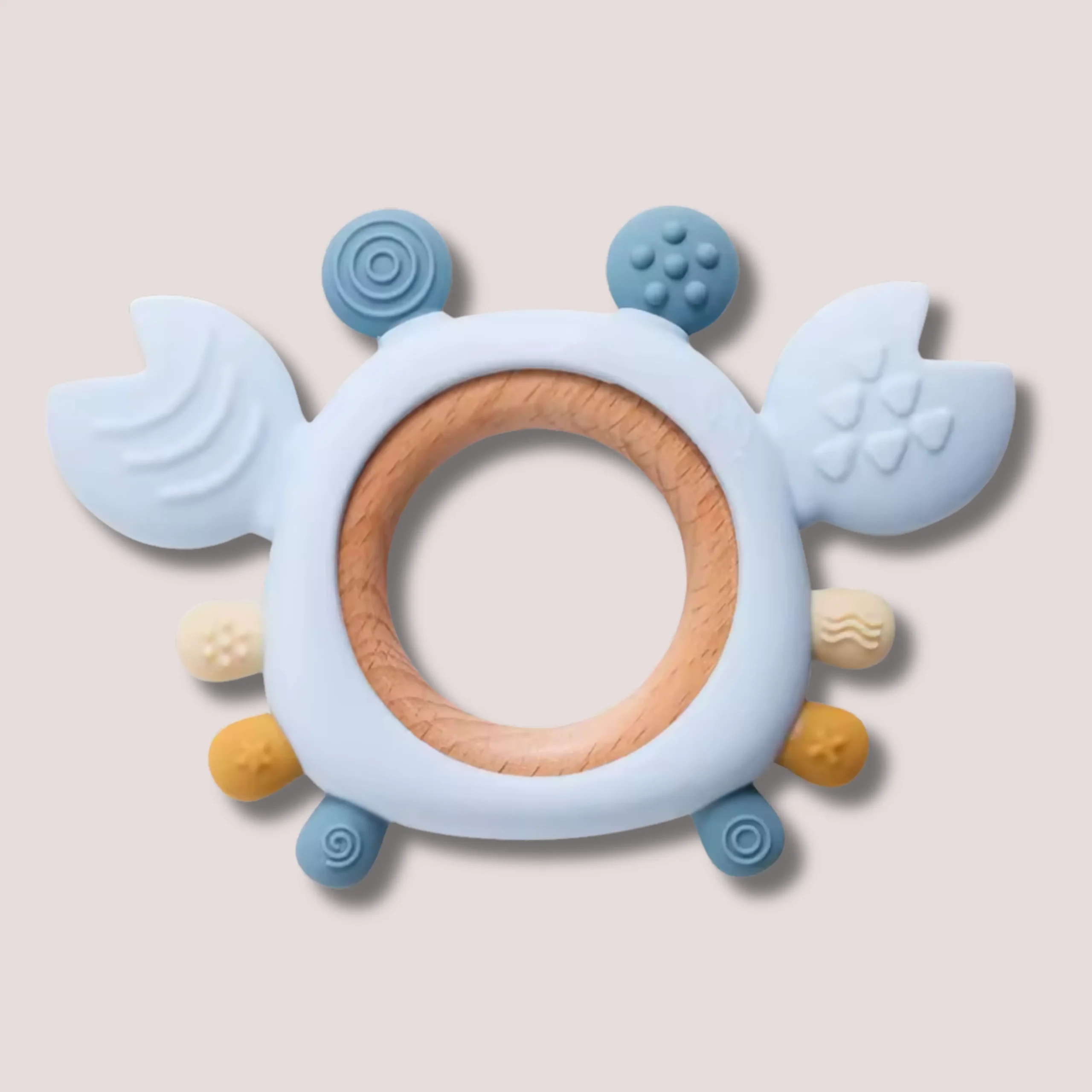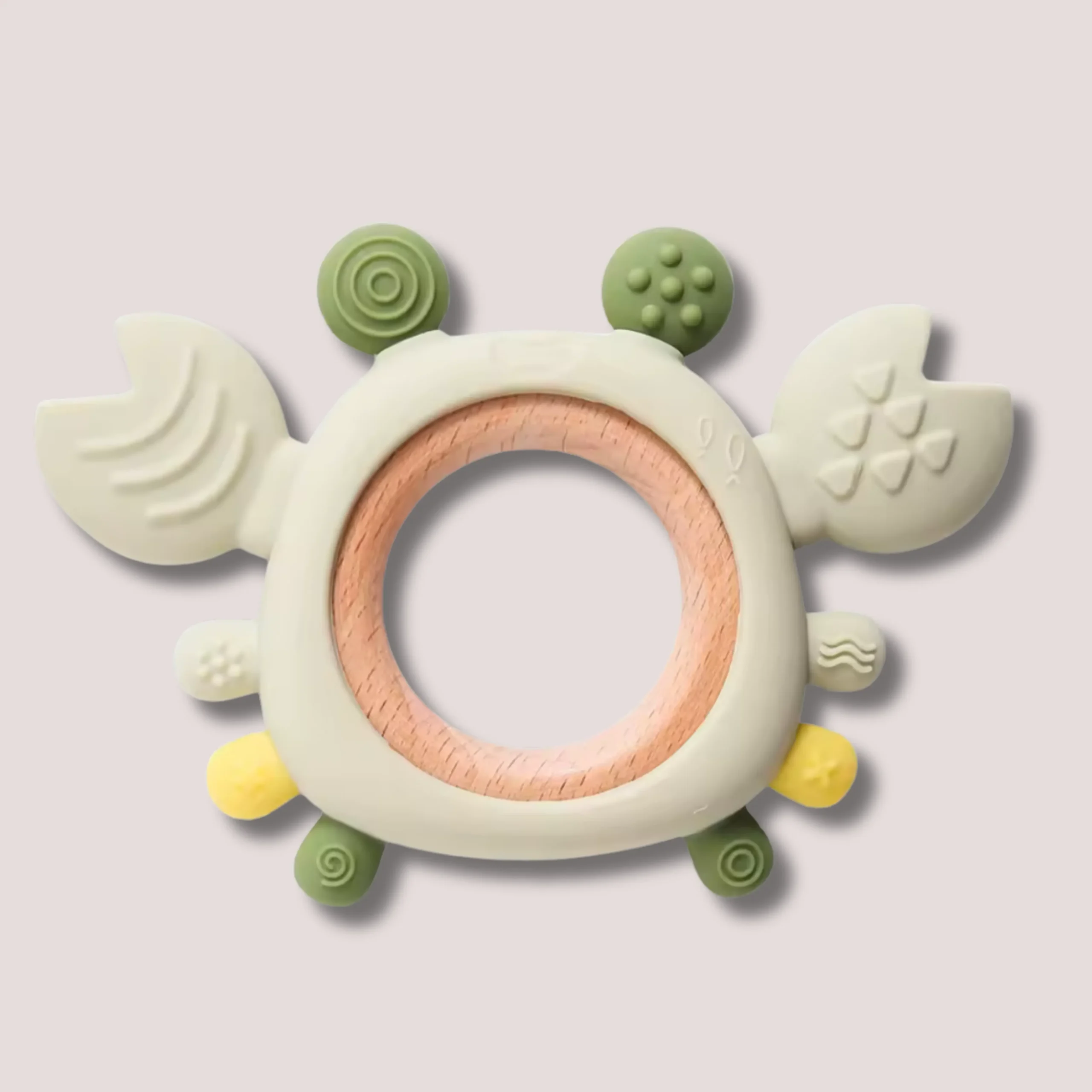 Anneau de Dentition 2-en-1 en Silicone & Bois – Crabe Malicieux