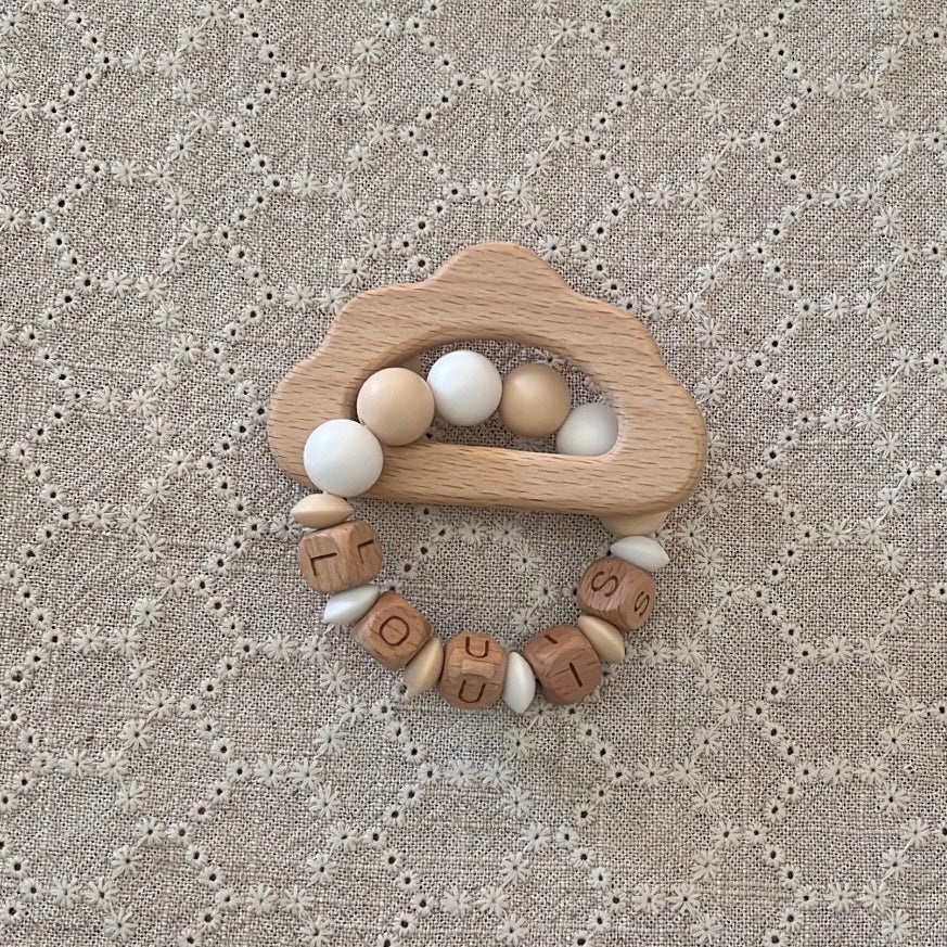 Anneau de dentition personnalisé en bois avec perles en silicone