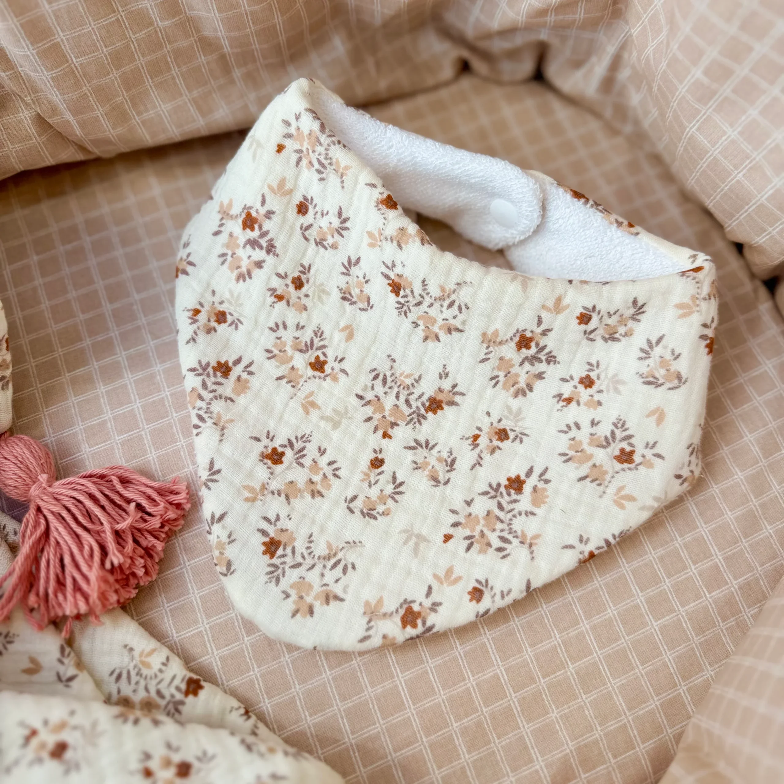 Bavoir bandana Aimée fleuri beige