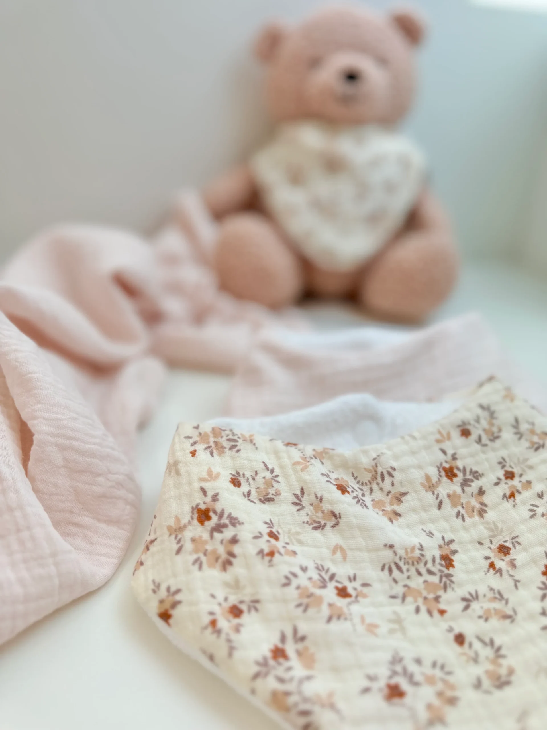 Bavoir bandana rose pâle en gaze de coton