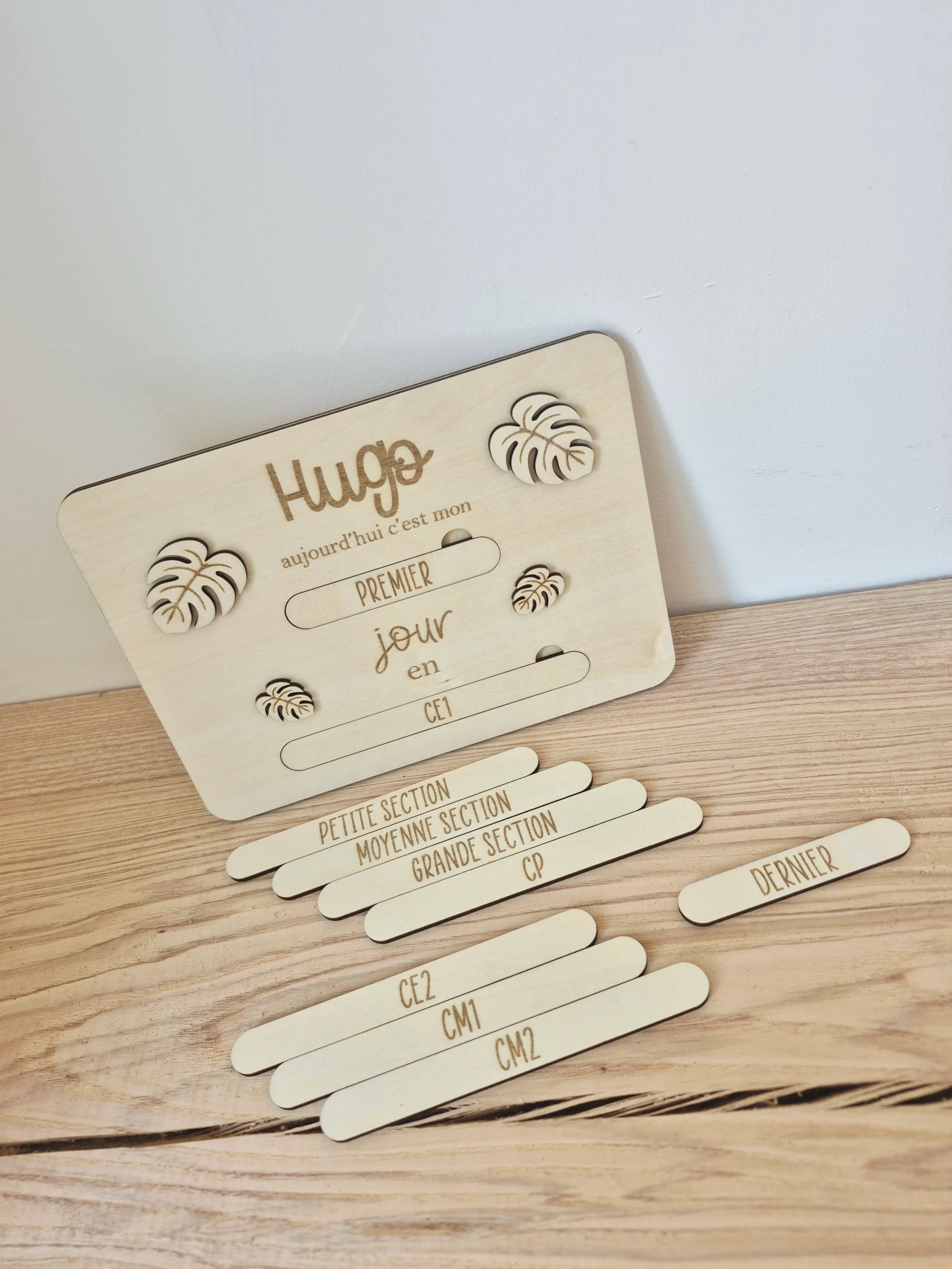 Pour les fans du bois ! Gardez de jolis souvenirs avec la plaque du premier ou dernier jour d’école! Elle est unique grâce à sa personnalisation au prénom de votre enfant. Elle pourra le suivre tout au long des années scolaire de la maternelle à la primaire. Personnalisez là en y inscrivant le prénom souhaité […]