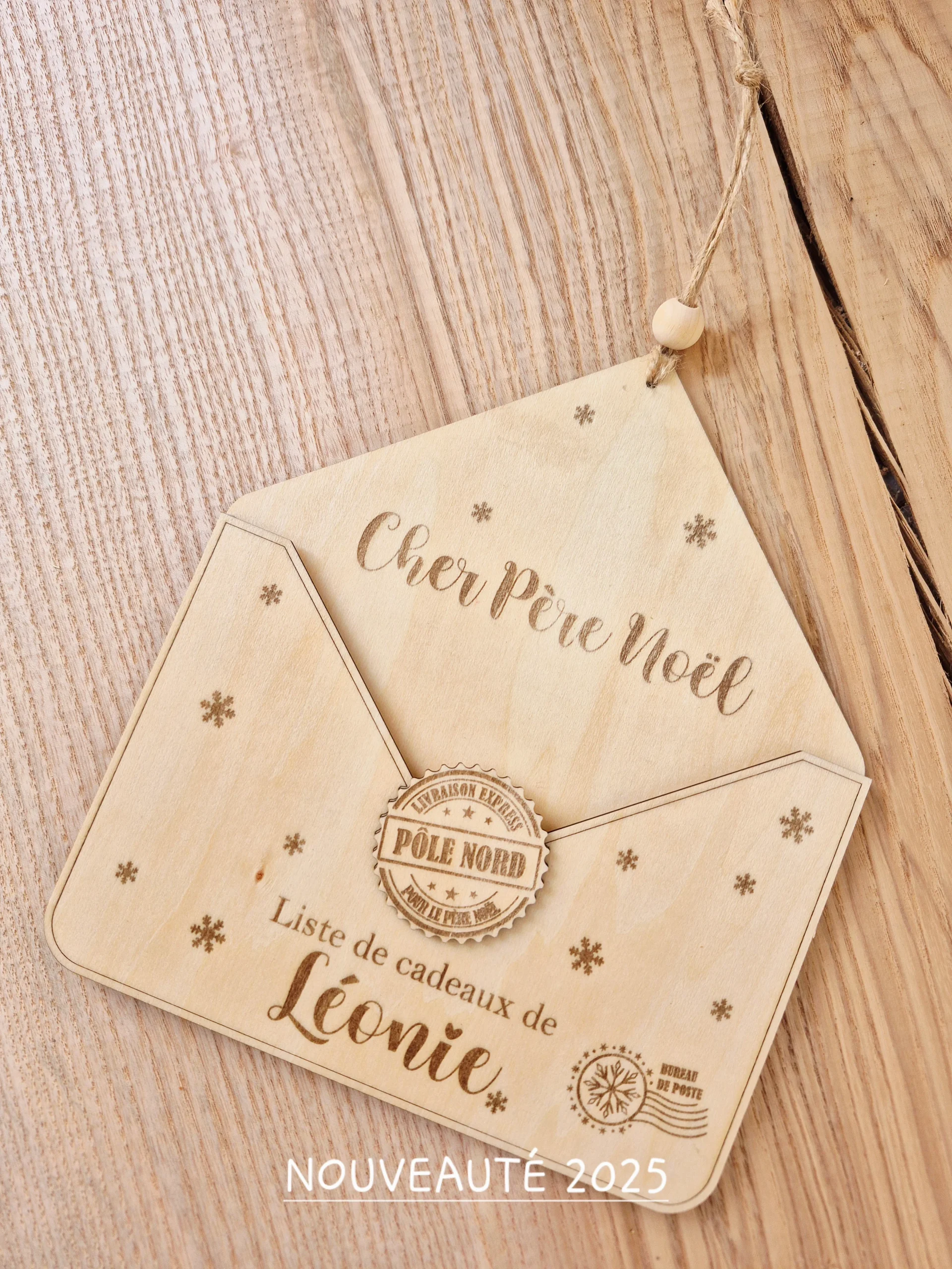 L’enveloppe en bois est un objet décoratif et unique grâce à sa personnalisation à installer dans votre sapin pour y glisser la lettre au Père Noël. Elle ravira petits et grands participants à la magie de Noël.
