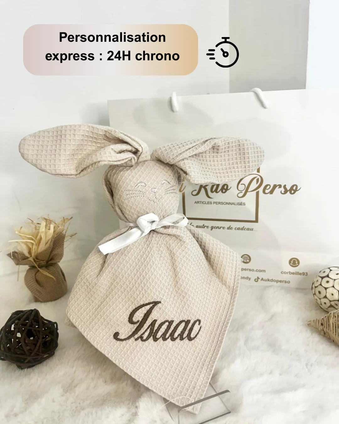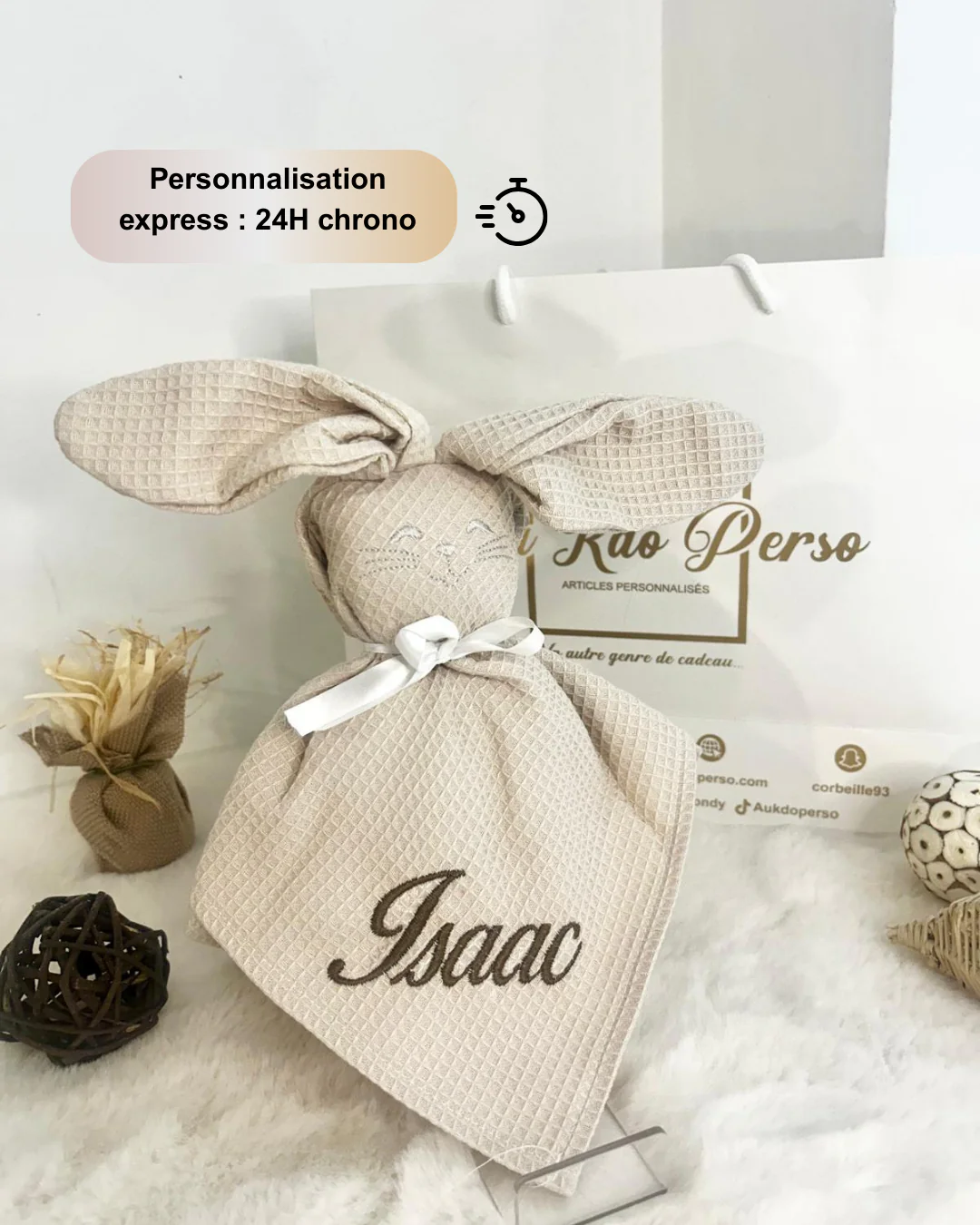 Doudou personnalisable en coton nid d’abeille – AU KDO PERSO