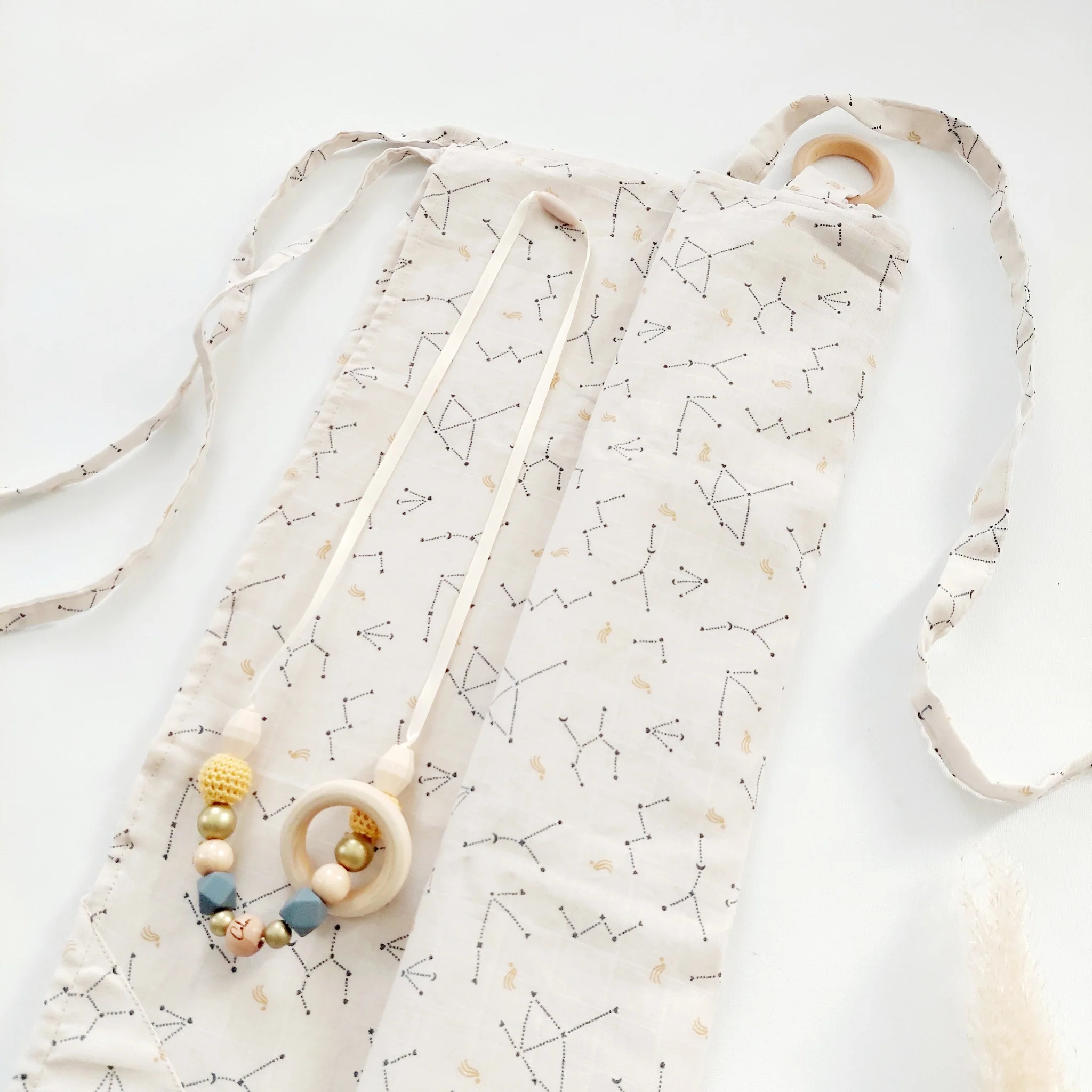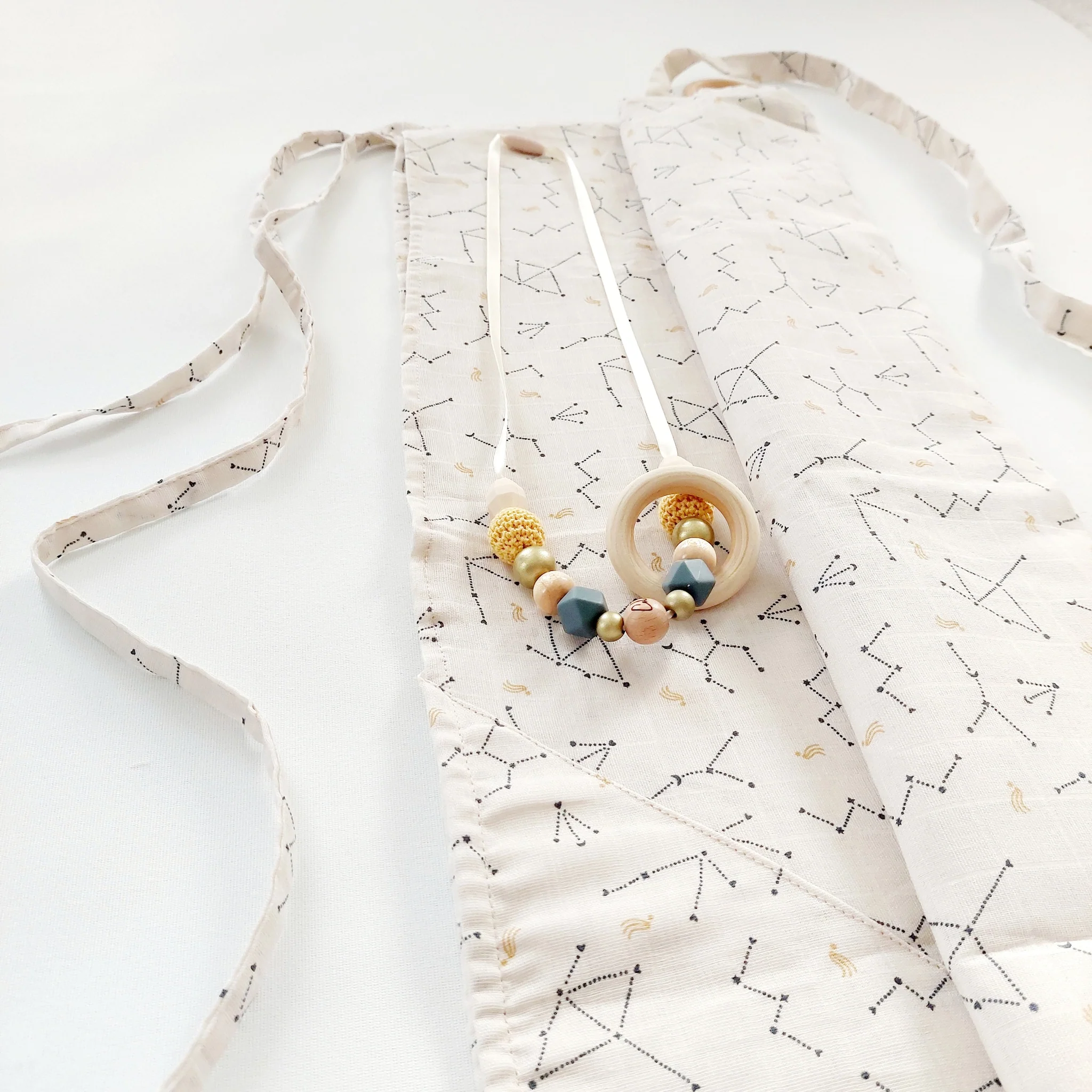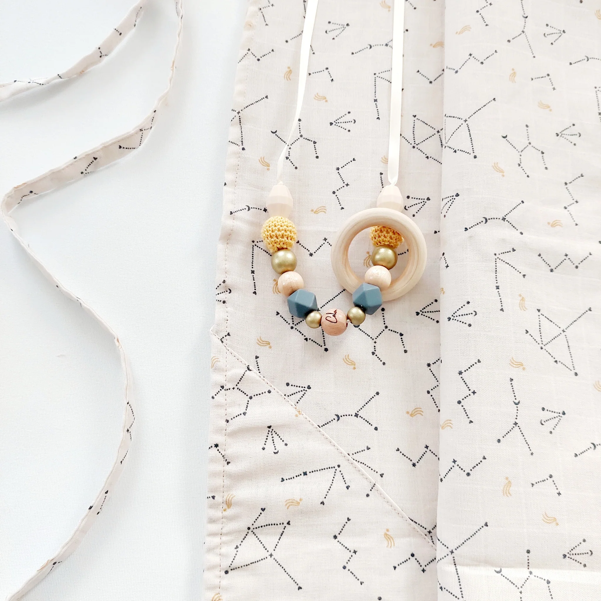 Coffret Drap d’allaitement en coton avec anneau en bois et Collier de perles pour bébé