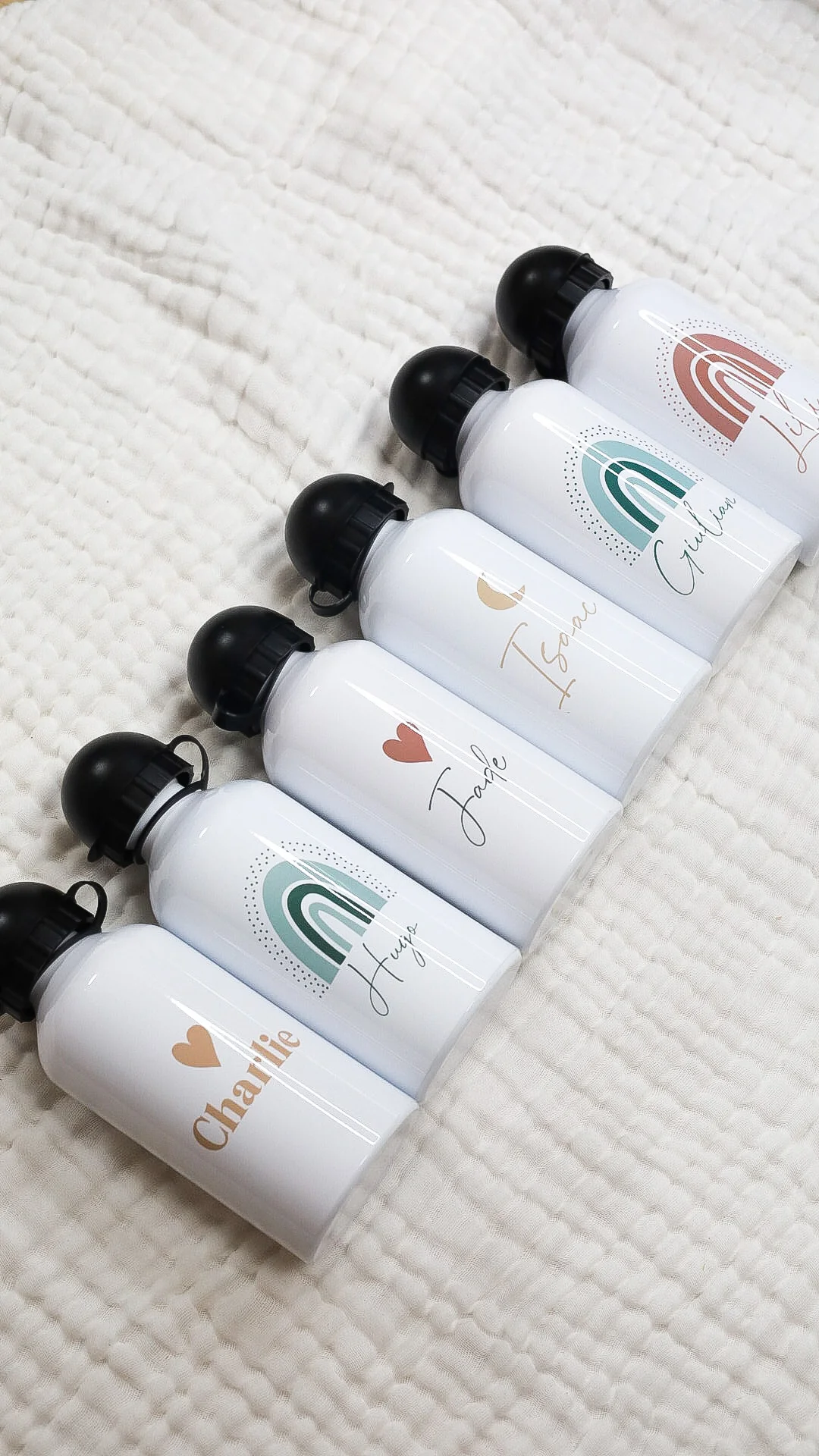 Une jolie gourde à personnaliser pour vos enfants ! Gourde en aluminium est très pratique pour être emportée partout afin de s’hydrater tout au long de la journée. (isotherme) 500ml Diamètre 73mm x 190mm (hauteur) Équipé d’un embout buccal, couvercle, bouchon à vis et mousqueton Livraison avec boîte blanche Personnalisation imprimée, lavage à la main […]