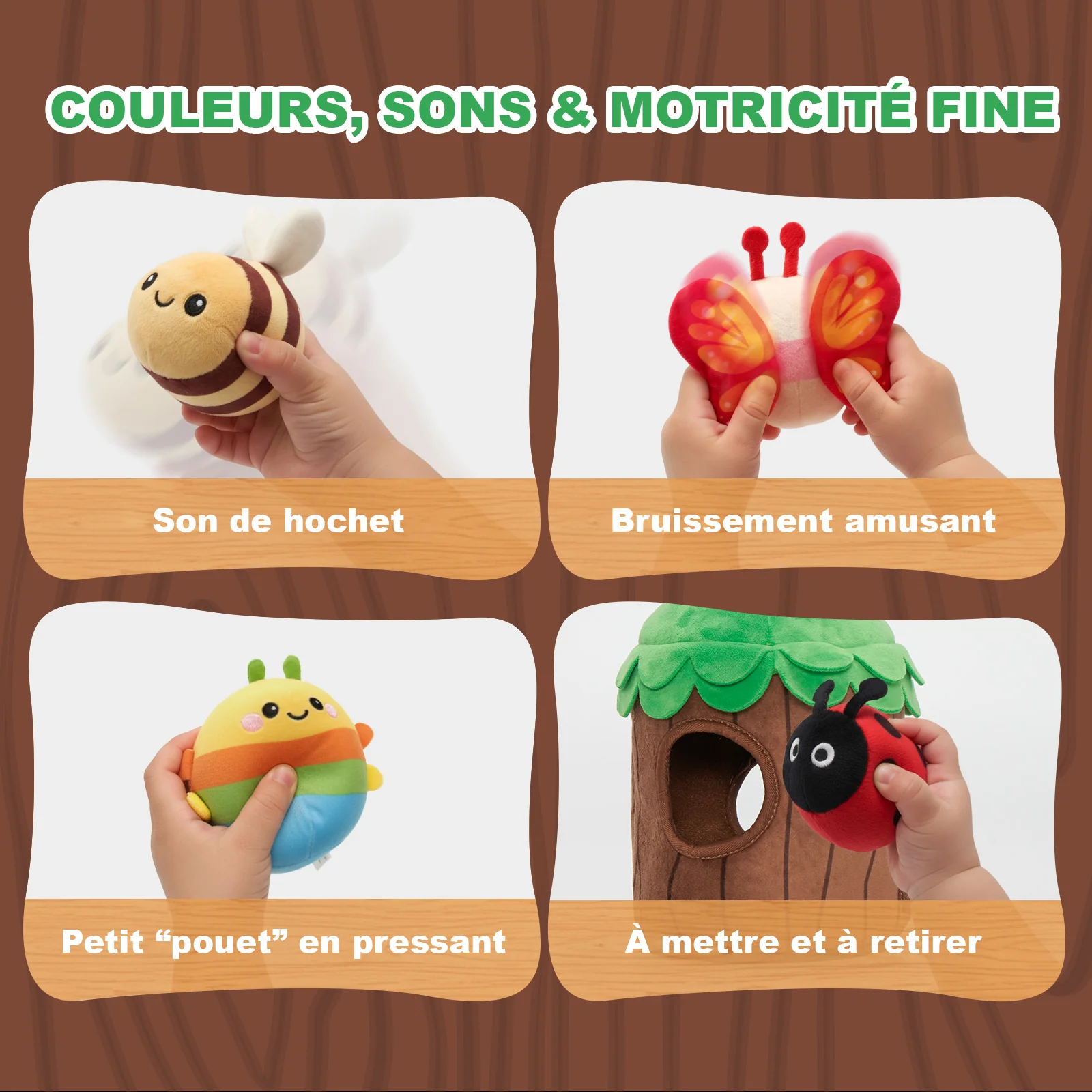 La Maison Arbre Câline – Les Premiers Amis Sensoriels ! Découvrez la maisonnette magique et ses 5 petits amis insectes !Créée pour éveiller les sens de bébé, développer sa motricité fine et devenir son tout premier compagnon réconfortant. 🌿 Un Monde de Découvertes Sensorielles Éveillez la curiosité avec des sons et textures interactifs.🔔 Hochet – […]