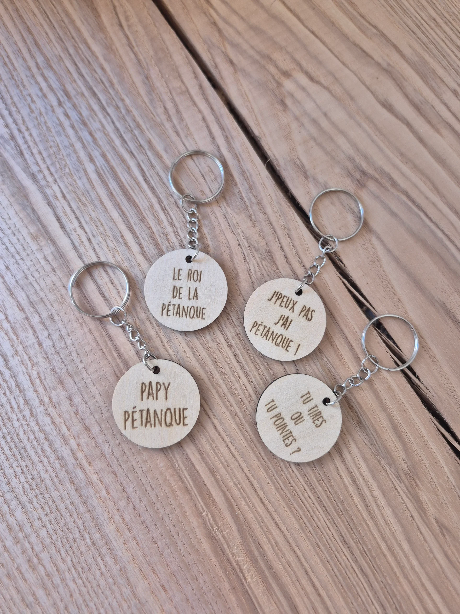 Le porte clef personnalisé en bois est idéal pour offrir à un fan de pétanque.