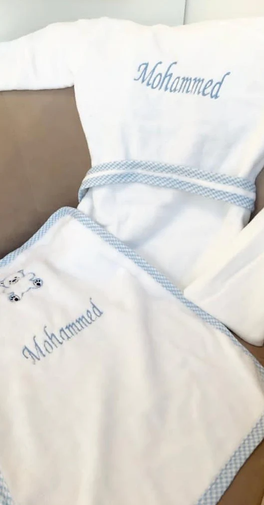 Peignoir à personnaliser 3 pièces pour bébé et 2 pièces pour enfant qui comporte :
