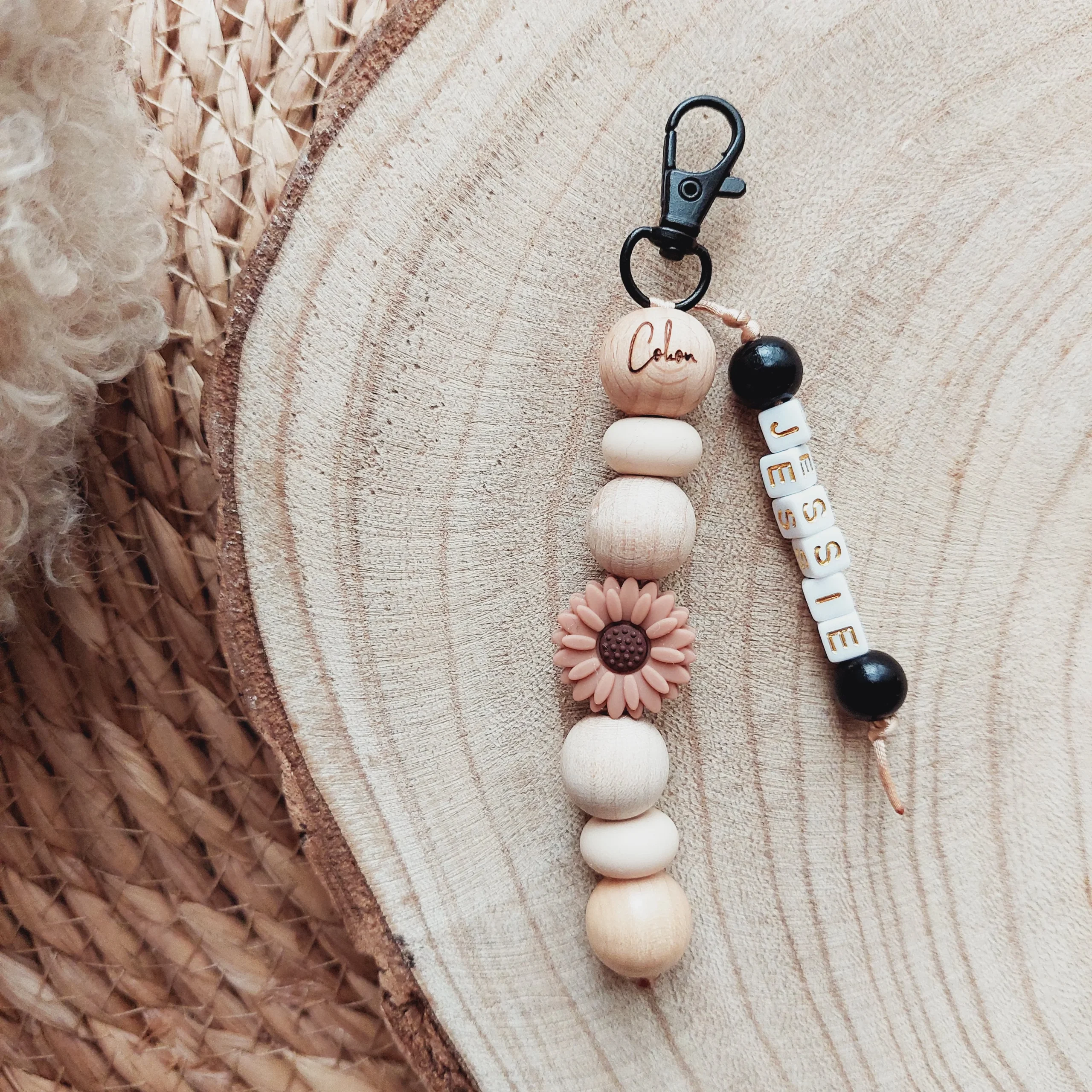 Offrez un cadeau personnalisé et unique à la maitresse ou au maitre de votre enfant avec notre porte-clé en bois et en silicone.