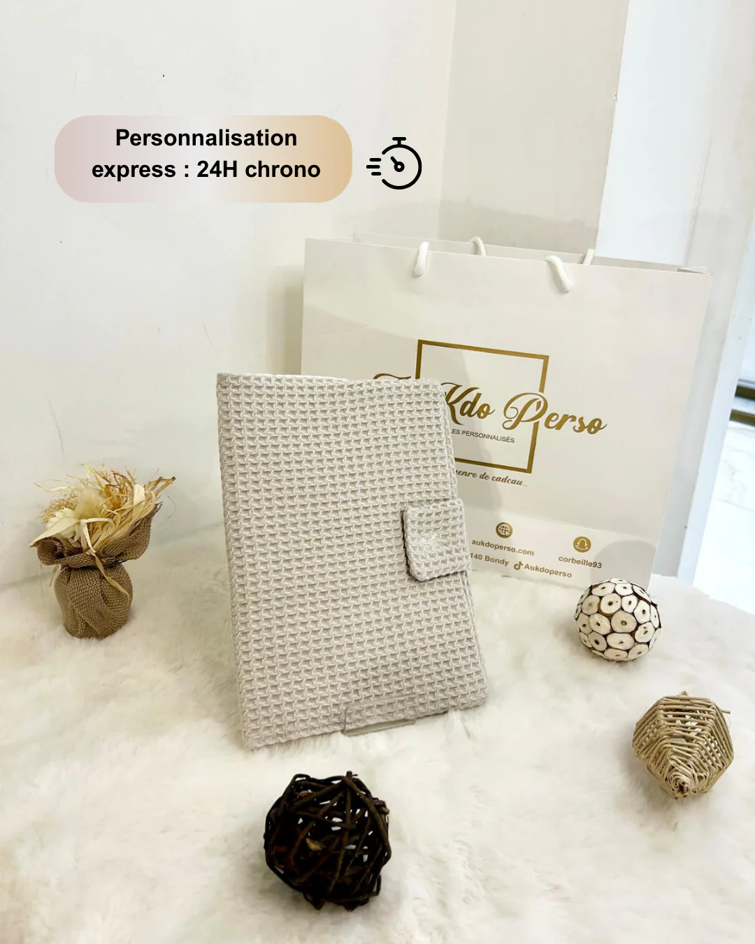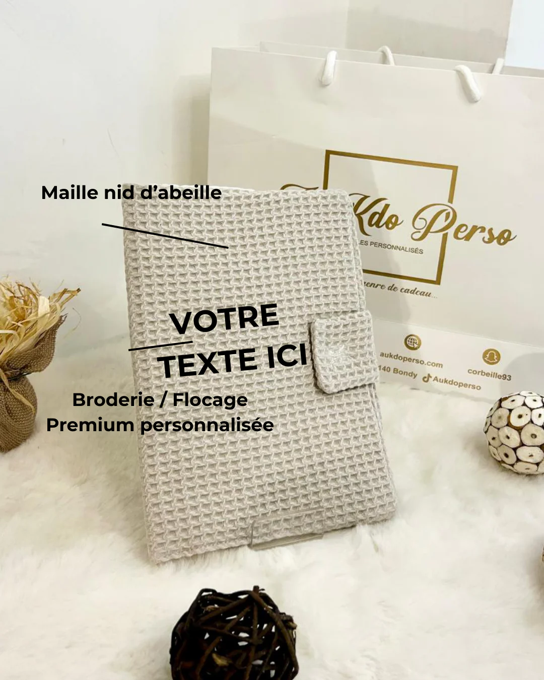 Protège Carnet personnalisable en coton nid d’abeille – AU KDO PERSO