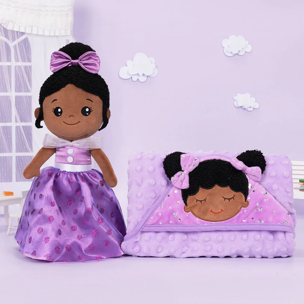Teint Foncé Personnalisée Poupée en Peluche en Robe Longue Violette